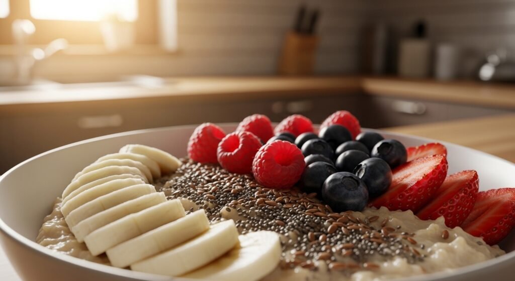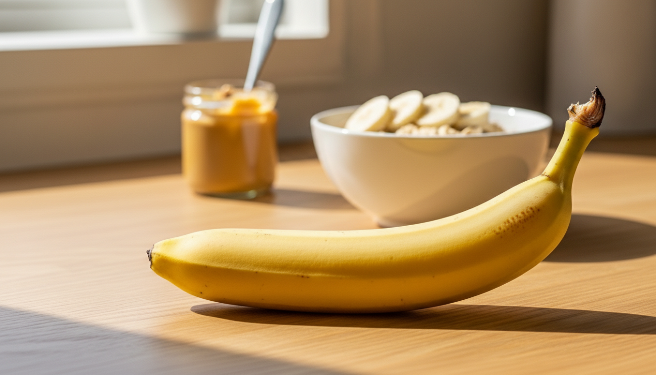 A banana paired with something rich in protein or fat – such as peanut butter – slows down the spike of natural sugars. This balance supports consistent energy and more stable blood sugar.