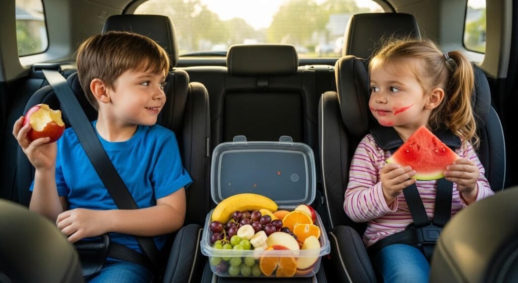 One of the most common causes that makes children angry while traveling is starvation. Carrying easy-to-devour food like culmination, sandwiches, or crackers helps children to have a complete stomach on long trips. The presence of water bottles also helps kids to maintain comfort and stay hydrated.
