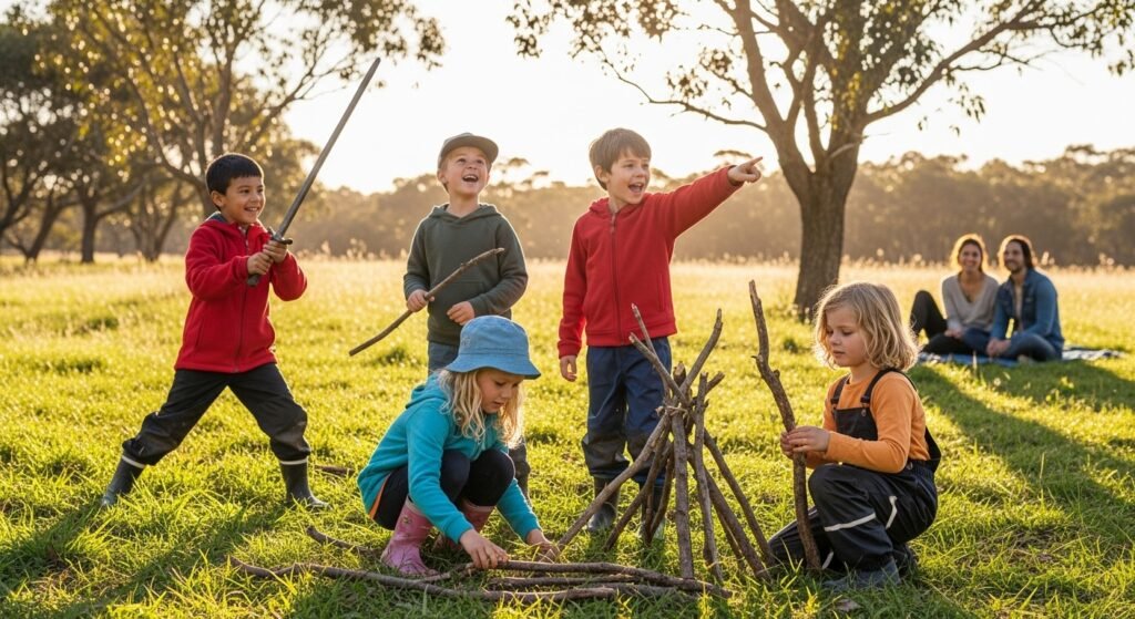 Nature encourages imagination. Sticks become swords, rocks become treasure and open spaces become adventure zones. Parents see how creative outdoor play leads to joy and emotional expression that indoor toys often limit.