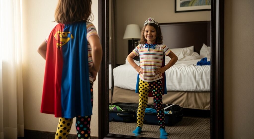 Engaging children in the process of clothing decisions is a collaborative approach as opposed to dictatorship. Discussions on the preferences of the style establish bonding. Mutually decided relationships develop trust. This connection enhances general traveling peace.
