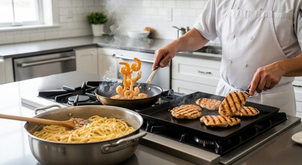Pasta made of cream is good with a slight contrast. There is light toasting of breadcrumbs, greens that are sauted or seared, and seafood, which adds a sense of balance and dimension. The alternate of texture makes the dish thrilling and rewarding.