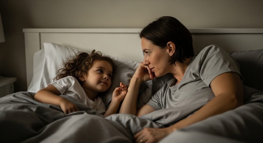 Some kids struggle to sleep because they’re holding onto the worries. Allowing a few minutes to talk about their day or feelings helps release emotional tension. Feeling heard makes it easier for kids to relax.