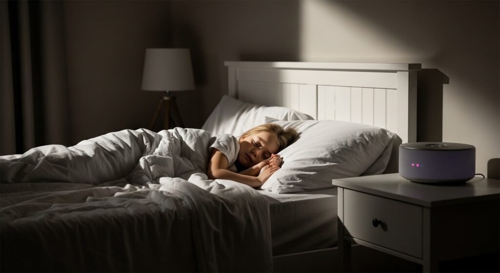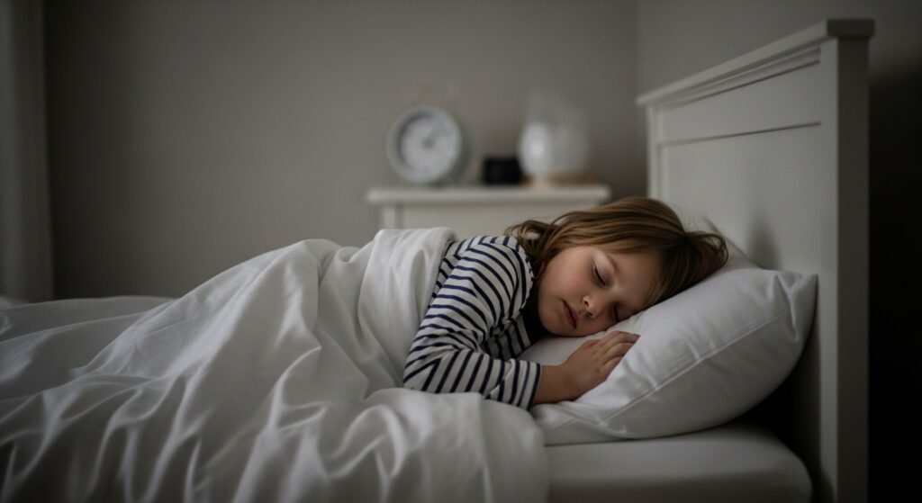 A cool, quiet, and dark bedroom supports better sleep. Comfortable bedding and minimal clutter help reduce distractions. Avoid using the bed for playtime so children associate it with rest.