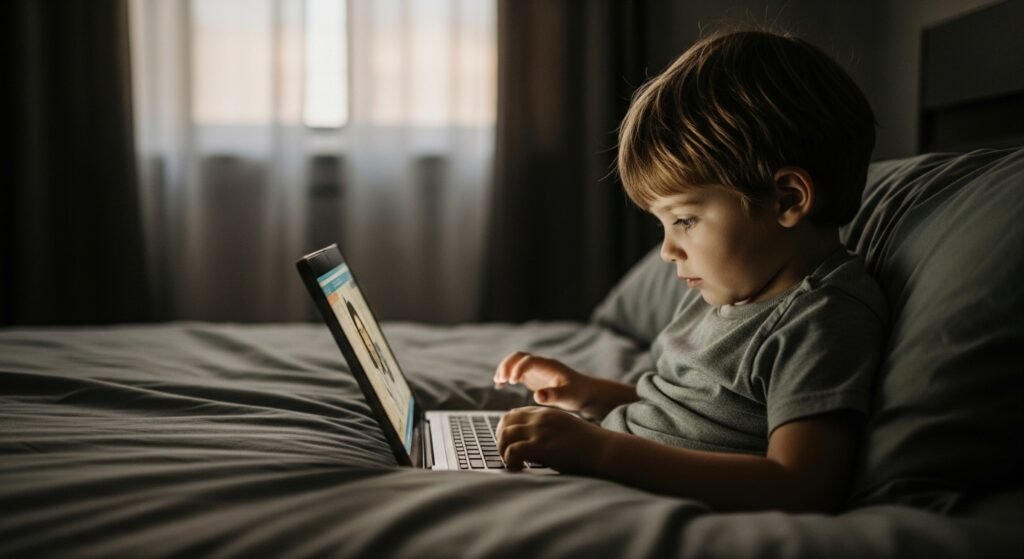 Screen stimulates the brain and suppresses melatonin, the sleep hormone. Turning off screens at least one hour before bed helps kids relax naturally. Replacing screens with quiet activities makes the transition to sleep better.