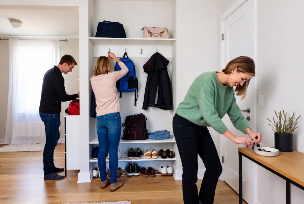 Mark one space by the entrance door with shoes, keys, back packs, and necessities. When there is a definite location of things, desperate searching is eliminated. Surprising periods of time are saved in this little system.