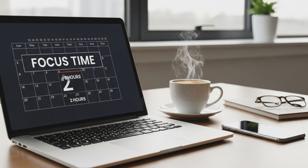 Make your 2 hours of focus block an implacable promise. This time should not be filled with meetings and interruptions. This time protection indicates that it is important, and it assists in developing a disciplined daily routine.