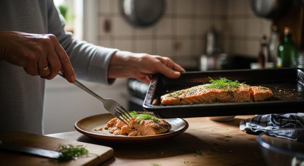 One hundred grams of salmon contains about twenty-five grams of protein and 1.5 to 2 grams of omega-3s that reduce inflammation. Since long-standing gentle flare-ups – known as inflamaging – speed up muscle shrinkage, these fats slow that process down. When people eat oily species often, science finds they keep their strong muscle tissue longer. That pattern holds steady across numerous investigations so far.